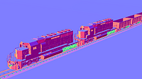 The next step forwards deals solely with graphics. The terrain mesh and railway track are now rendered with procedurally generated textures, and most models with hand-painted textures. At the moment,...
